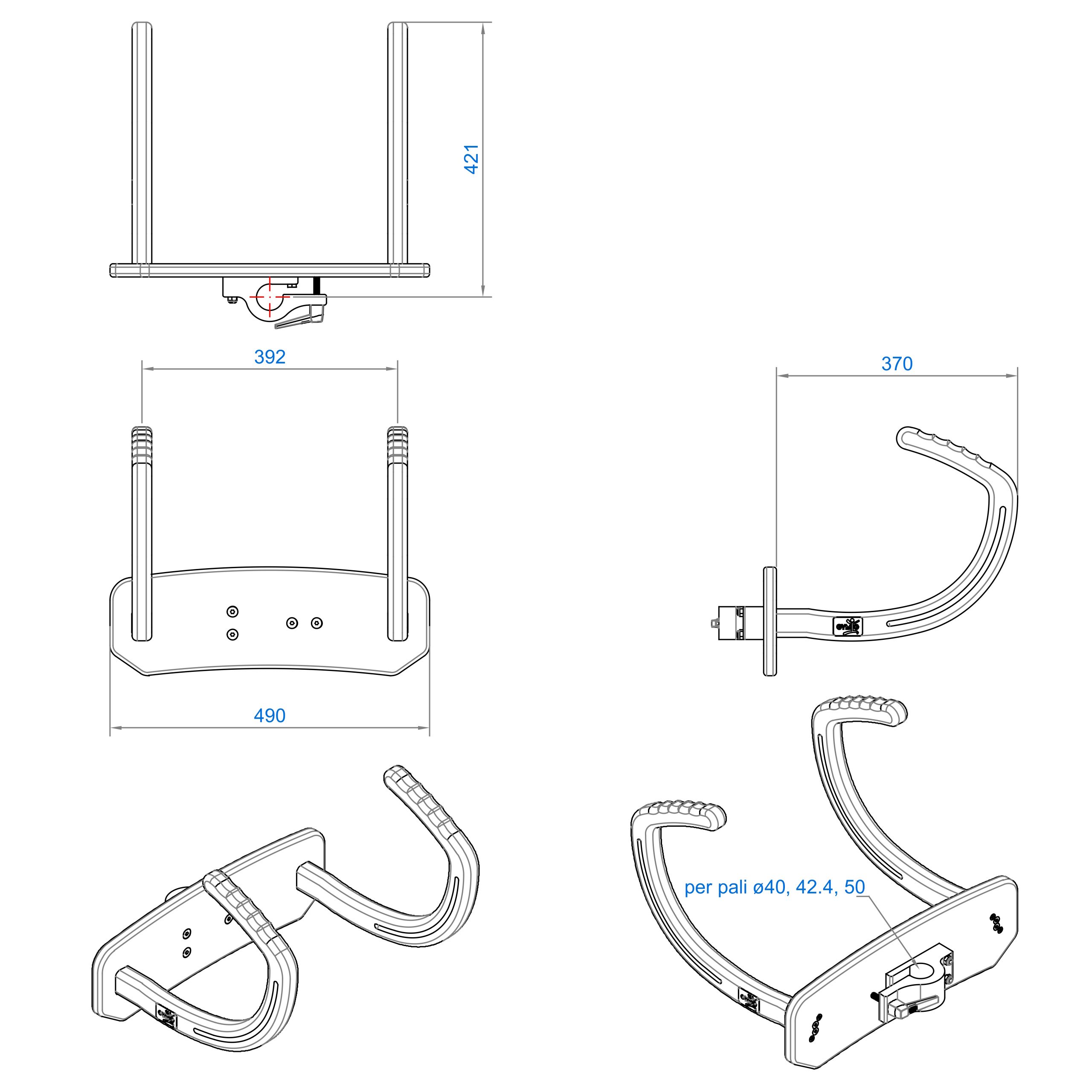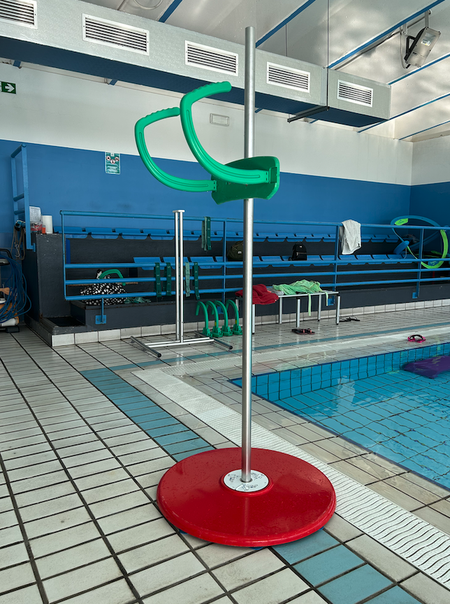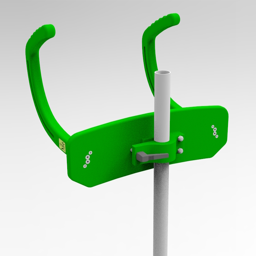 GYM-G EXTRA è stato realizzato come accessorio per essere applicato a qualsiasi “palo acquatico” esistente in commercio. Il sistema di aggancio al palo viene prodotto in tre versioni diverse e adatte a pali di ø 40, 42.4 e 50 mm. E’ possibile realizzare agganci personalizzati.